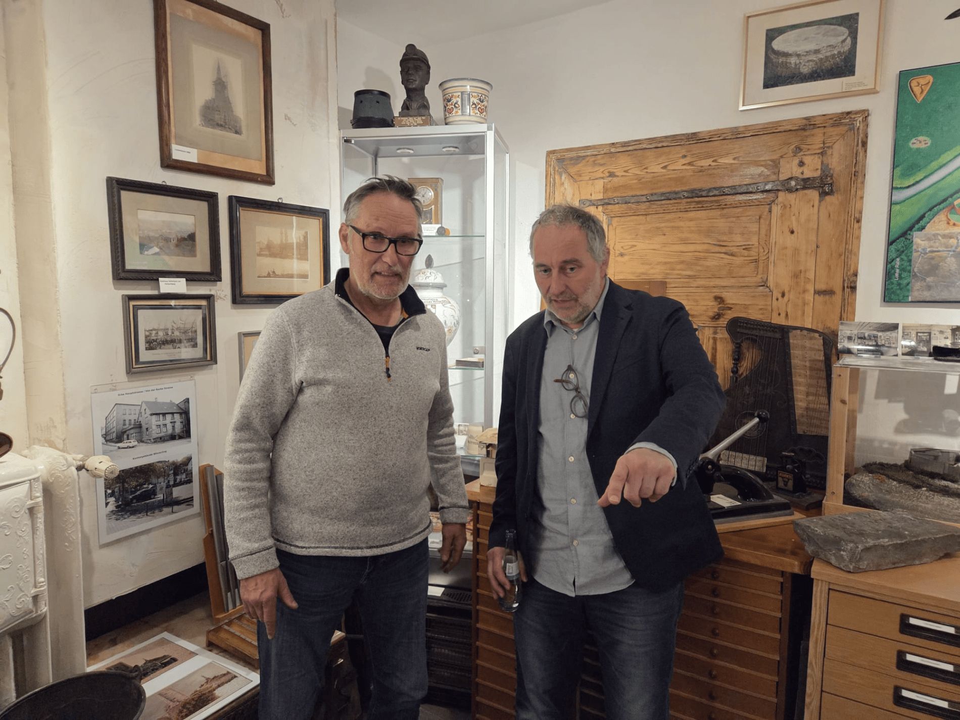 Am 31. März 2026 besuchte unser amtierender Bürgermeister Draht auf Einladung unseres Vorsitzenden den Heimatverein Wetter e.V. Er informierte sich über unsere Arbeit und unser Anliege, ließ sich vom Museumleiter Georg Leber das Museum zeigen und wurde von Bernd Emde mit Informationen zu einem Herzensprojekt des Vereins mit Infomaterial ausgestattet.