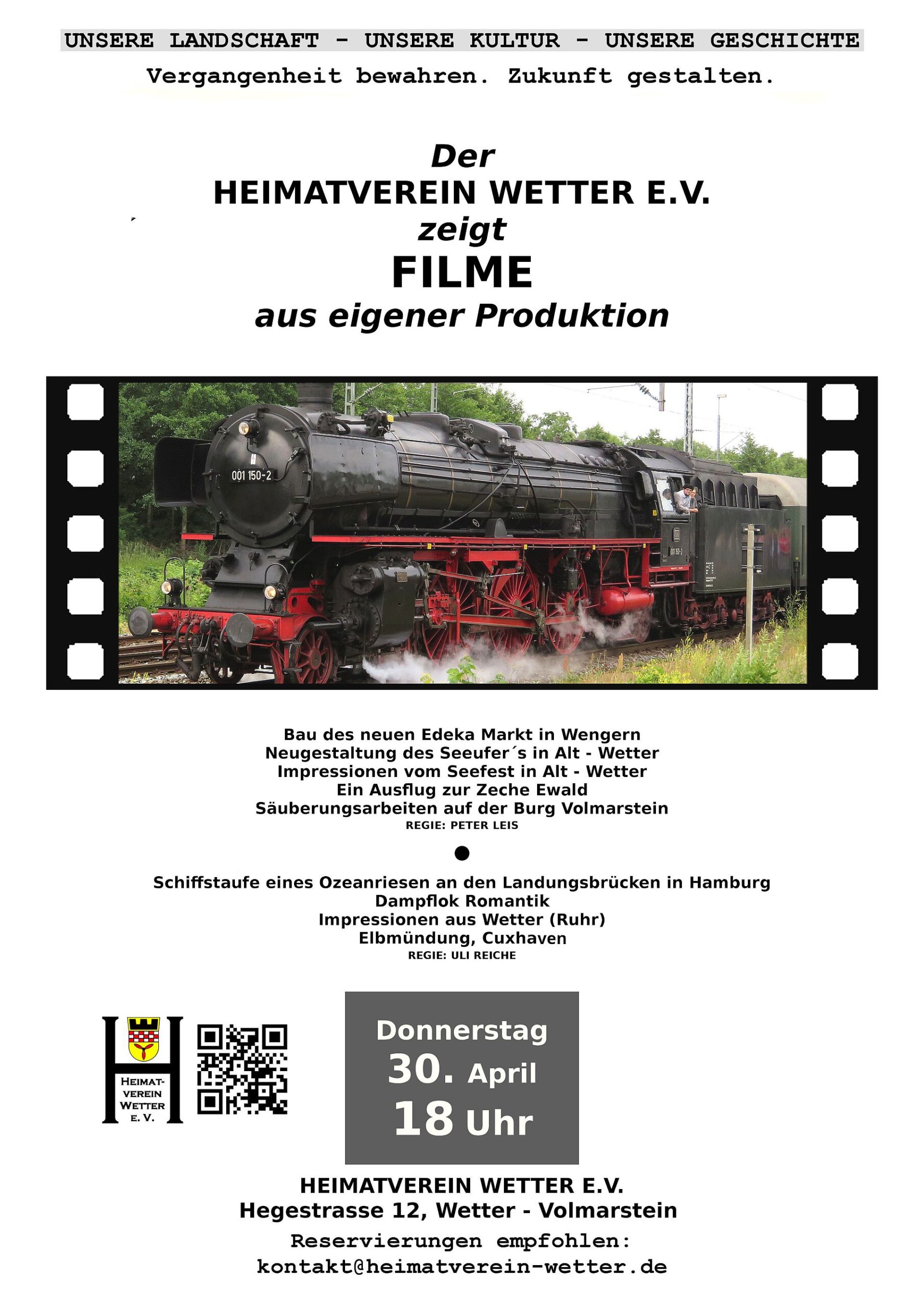 Eine Platzreservierung unter kontakt@heimatverein-wetter.de wird empfohlen.