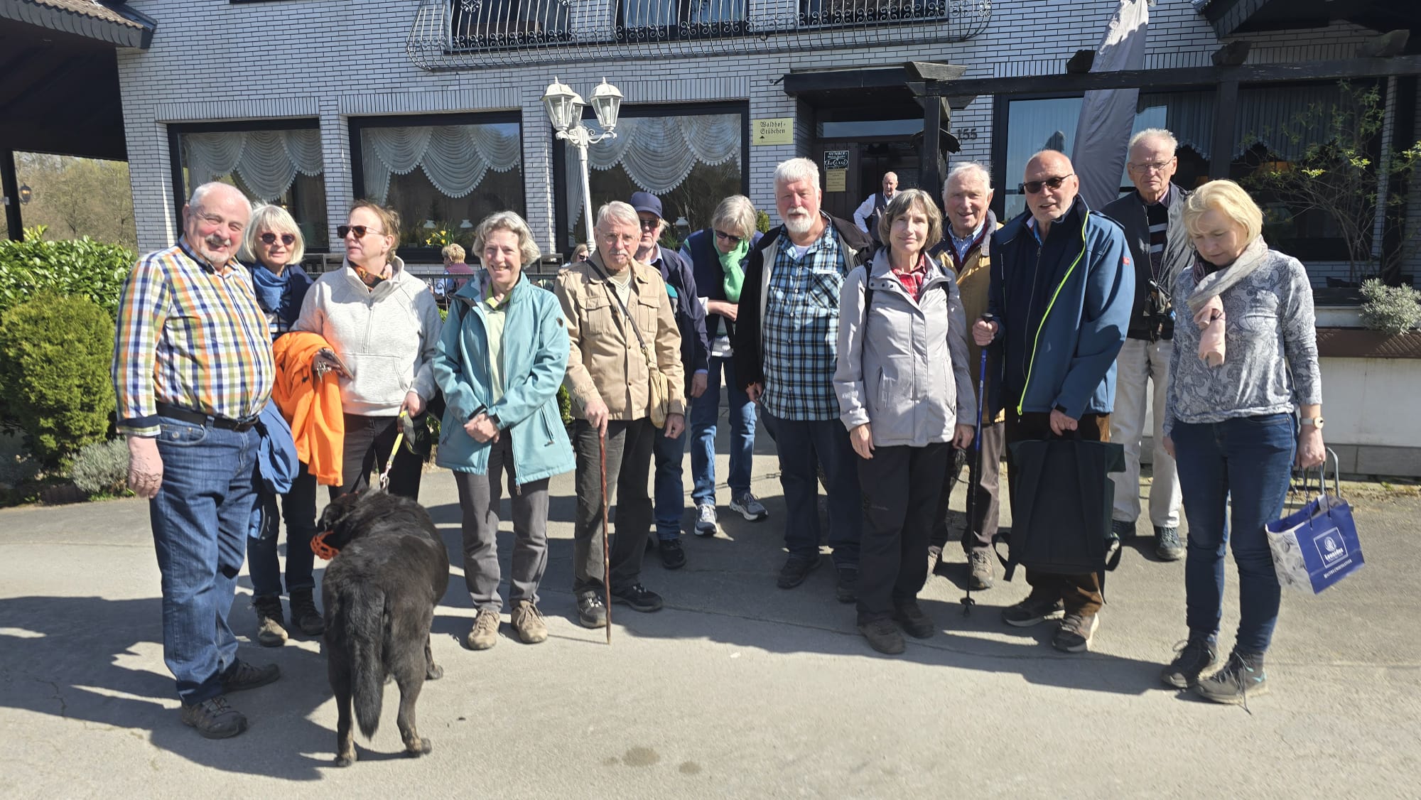 Unsere Wanderung in der Elfringhauser Schweiz startete am 5. April 2025 auf dem Wanderparkplatz der Gaststätte Waldhof, führte uns um den Juttermannsberg zum Bergerhof und zurück zum Waldhof, wo wir uns für die Rückfahrt bei einem guten Essen erholten.