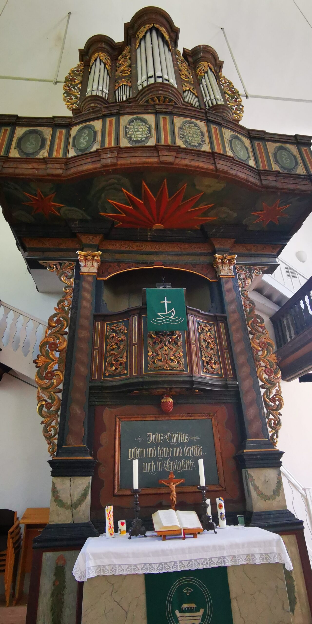 Altar mit Orgel in der lutherischen Kirche Unterburg