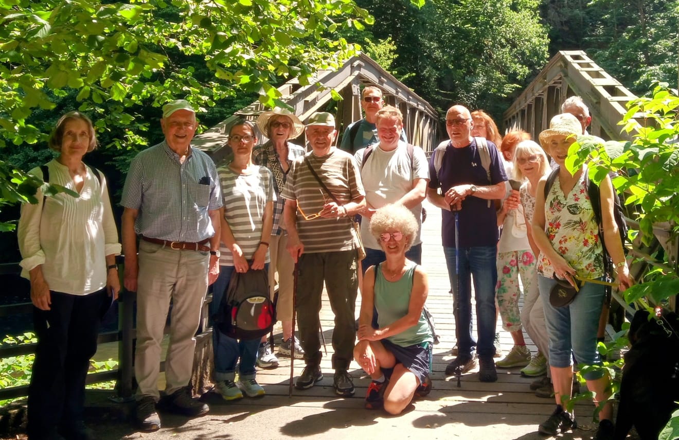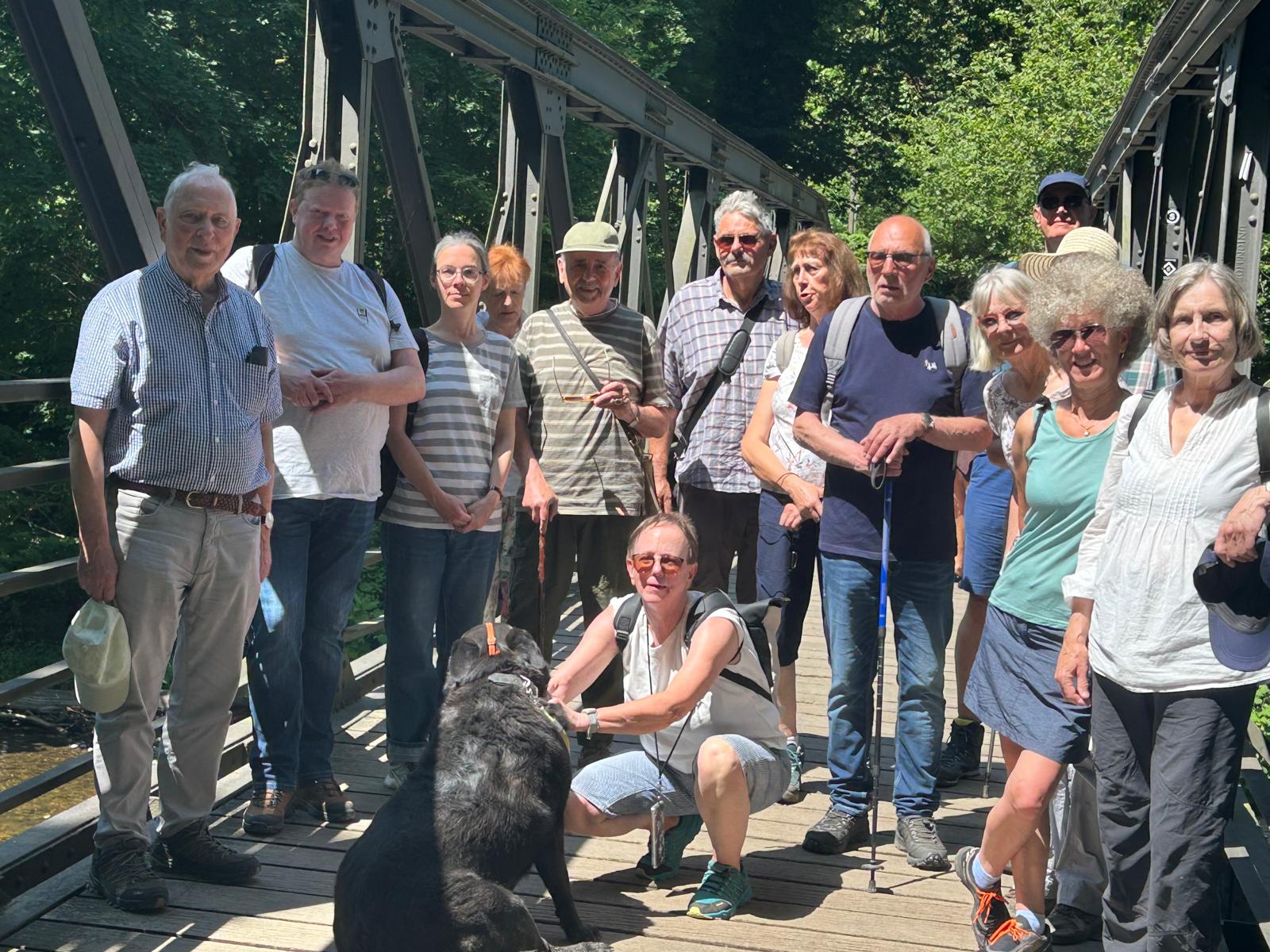 Eine Rundwanderung entlang der Wupper zwischen Unterburg und Wiesenbrücke unternahm unsere Wandergruppe am 21. Juni 2025. Die Tour war 6 km lang und führte uns von Unterburg hinauf über den Jagenberg, durch verträumte Wälder und dann hinab zum ehemaligen Wiesenkotten. An der Wiesenbrücke überquerten wir die Wupper und gingen an der lutherischen Kirche Unterburg vorbei zu den Wupperterrassen, wo wir die Wanderung bei gutem Essen beendeten. Aufgrund der großen Hitze hatten wir uns für eine kleine, nur etwa 6km lange Tour entschieden. Unterwegs erzählte uns Thorsten Schmitz am Rande des Weges interessante historische Geschichten.